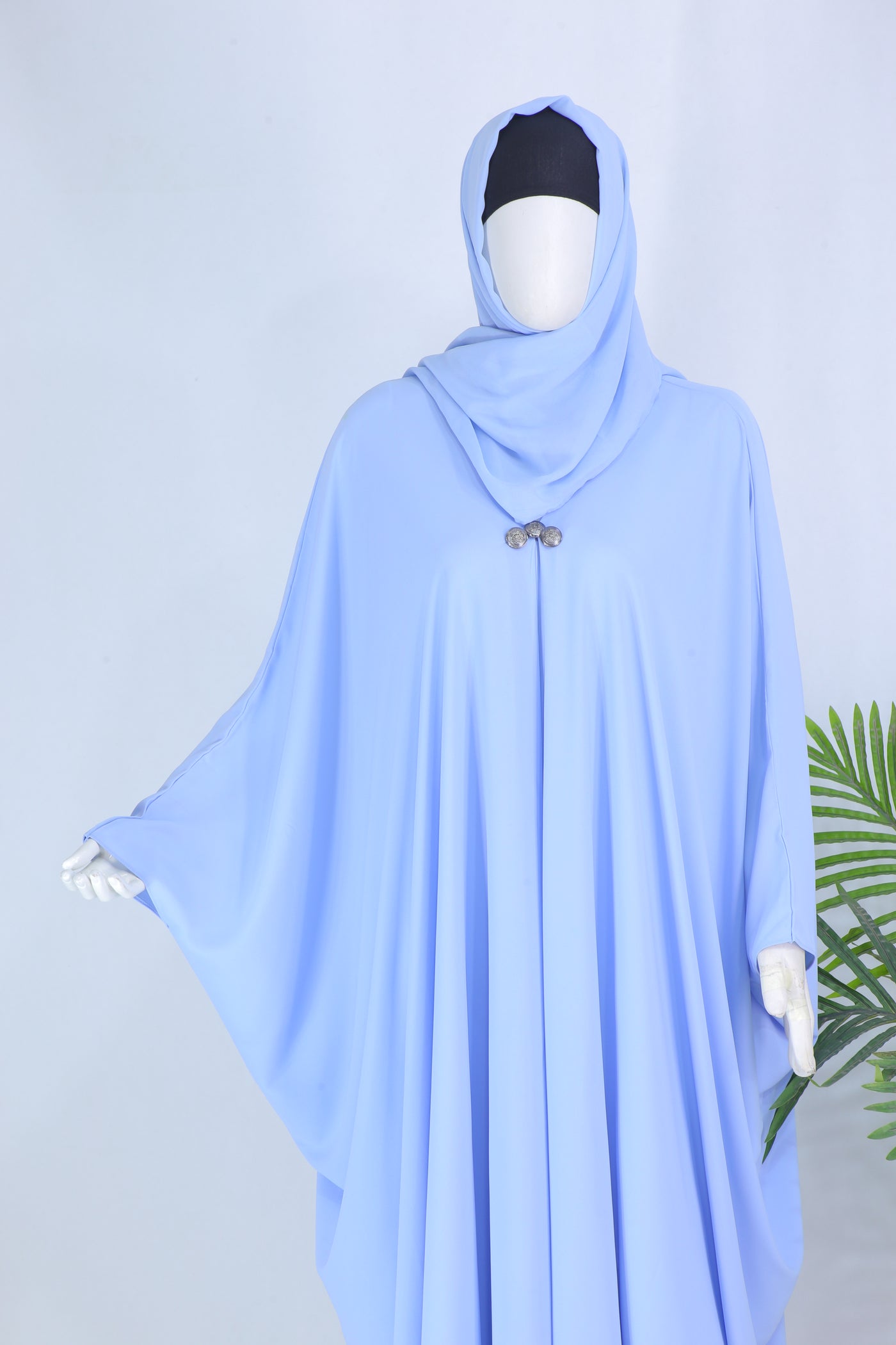 Introducing Grace Sky Blue, the ultimate baggie style Abaya with a sophisticated three button design. Its cool summer color and high quality Georgette fabric make it perfect for any formal occasion. Elevate your look with this exclusive and elegant Abaya.