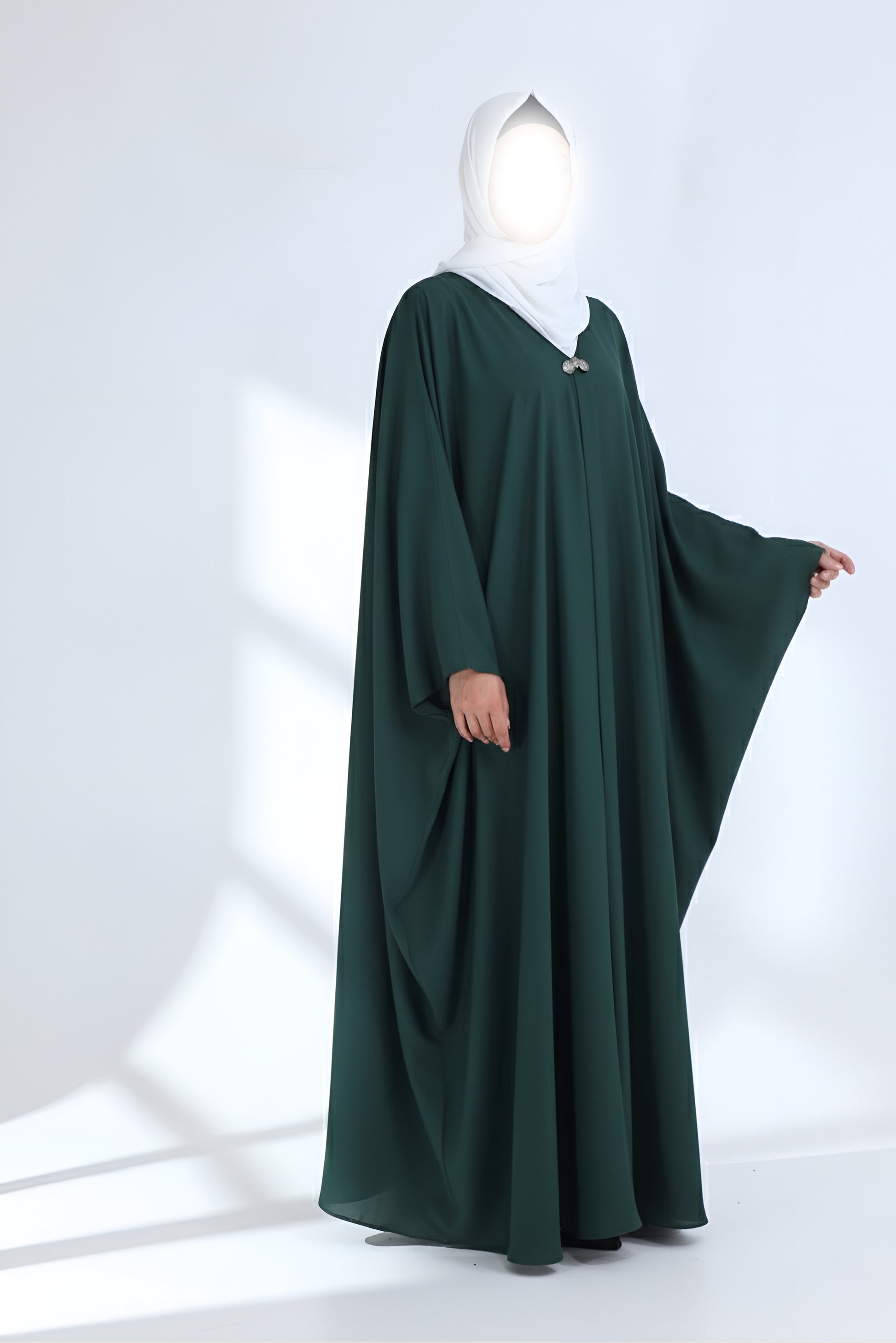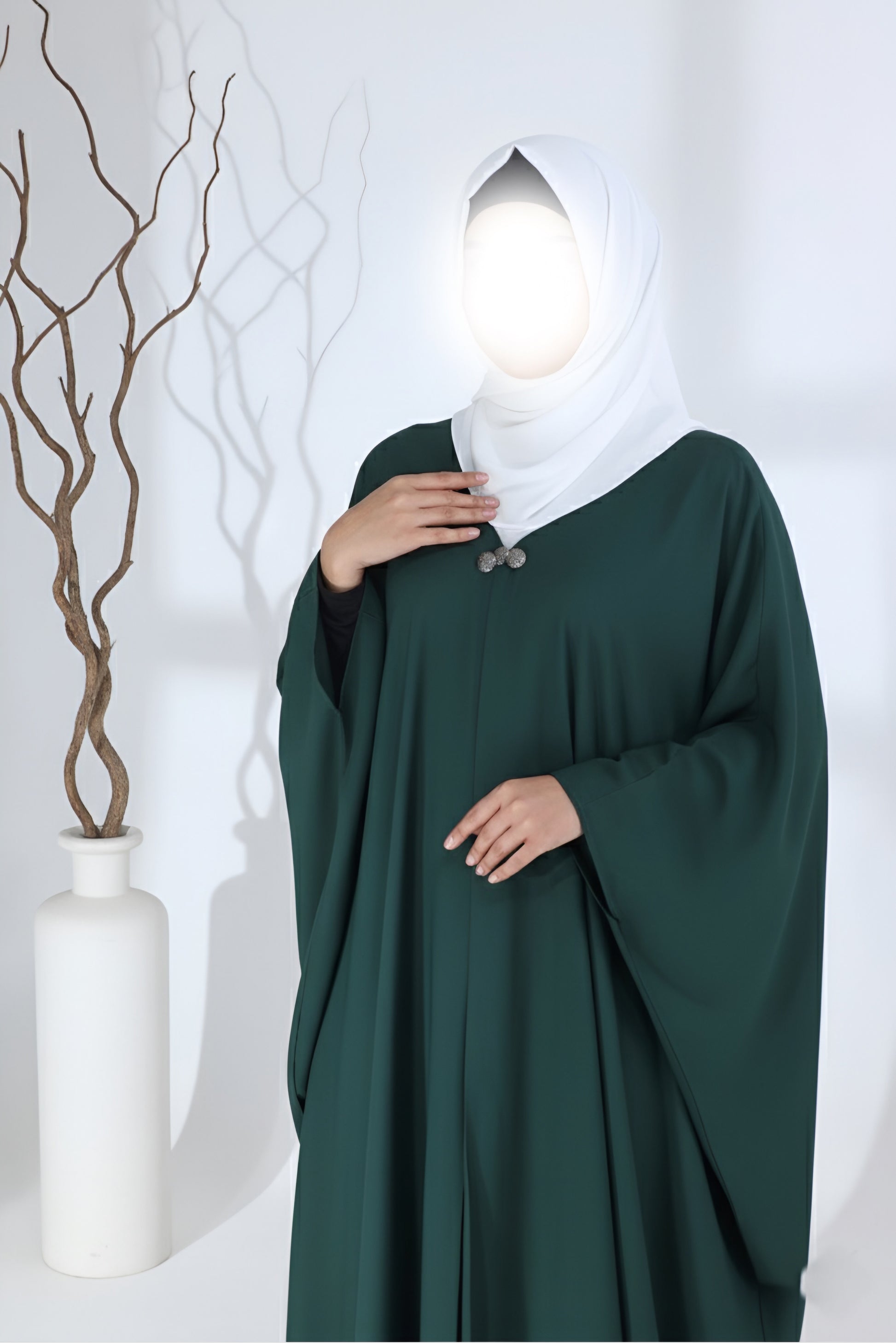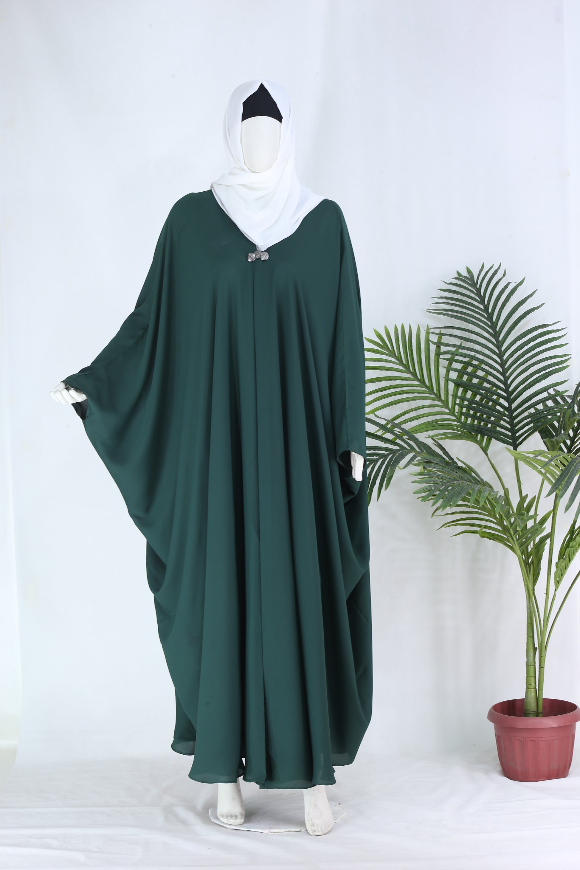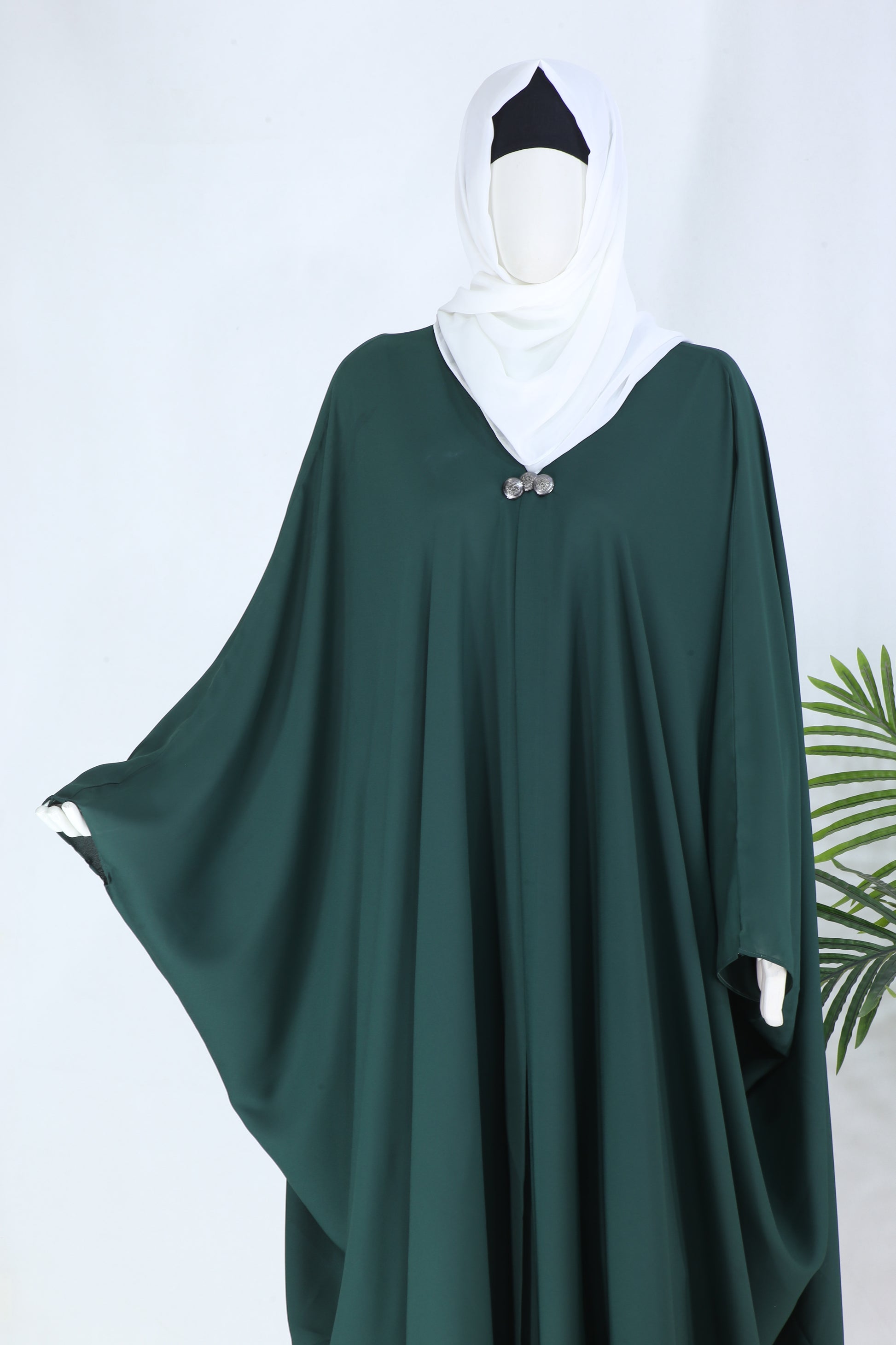 Introducing Grace Green, the ultimate baggie style Abaya with a sophisticated three button design. Its cool summer color and high quality Georgette fabric make it perfect for any formal occasion. Elevate your look with this exclusive and elegant Abaya.