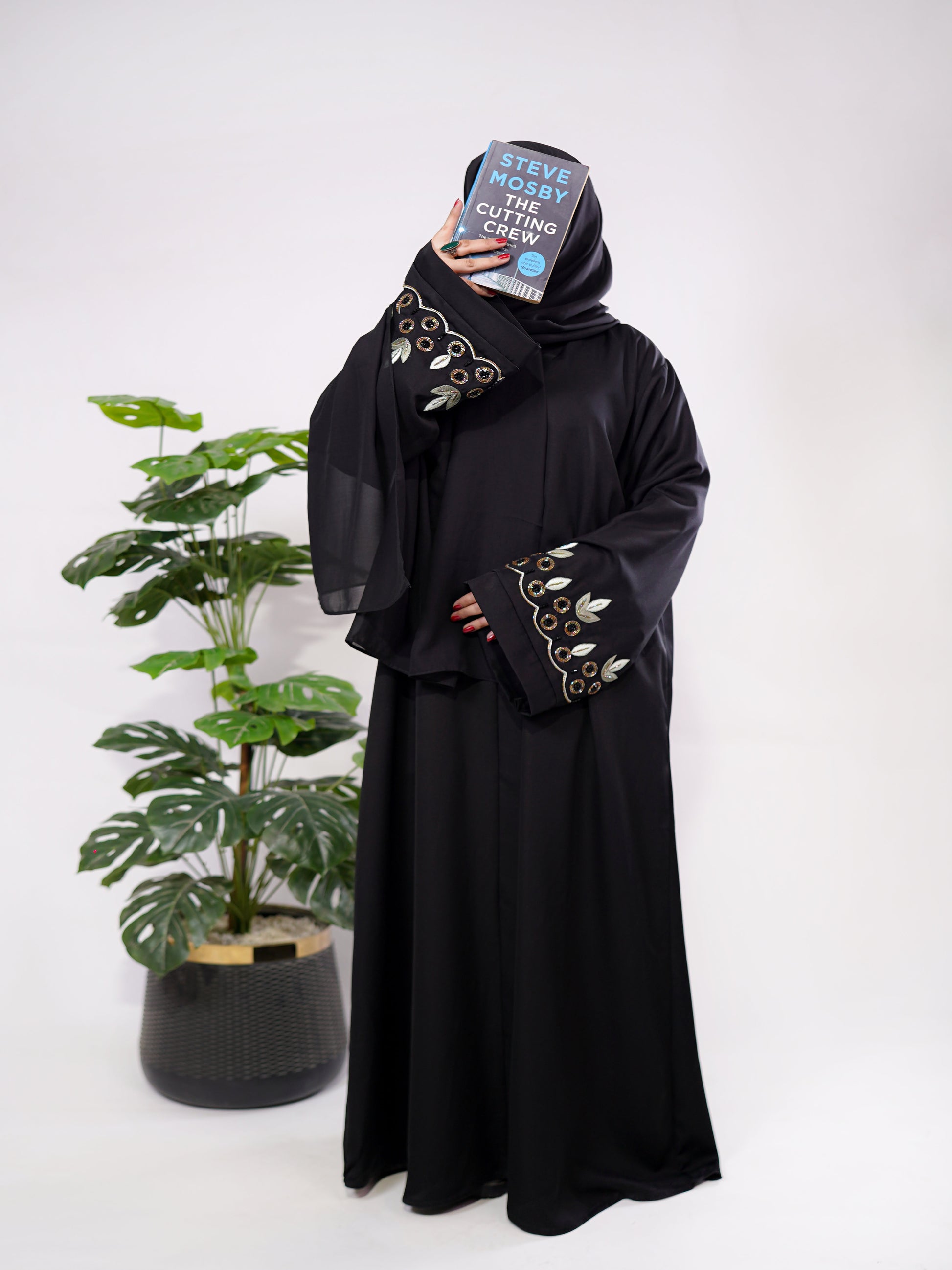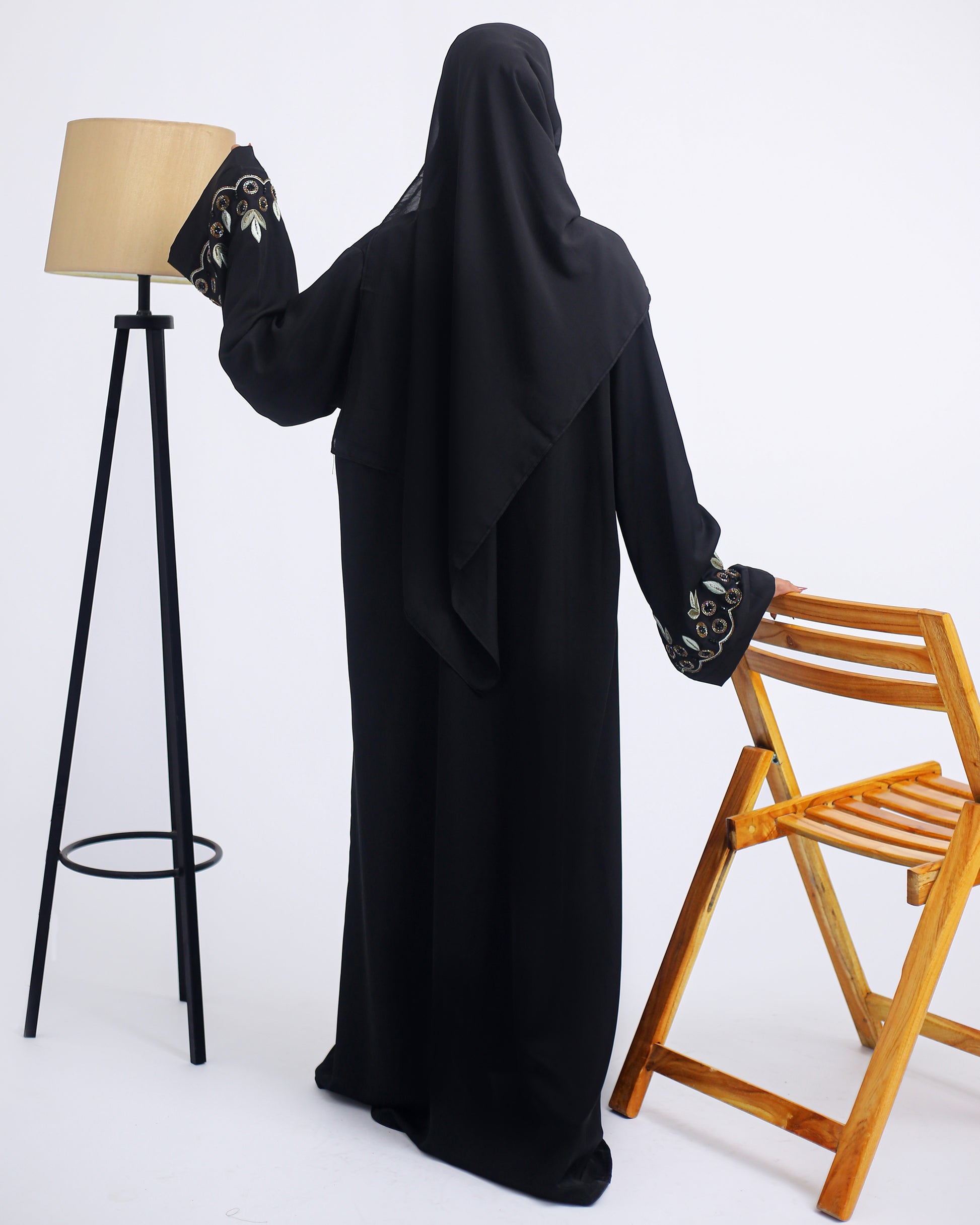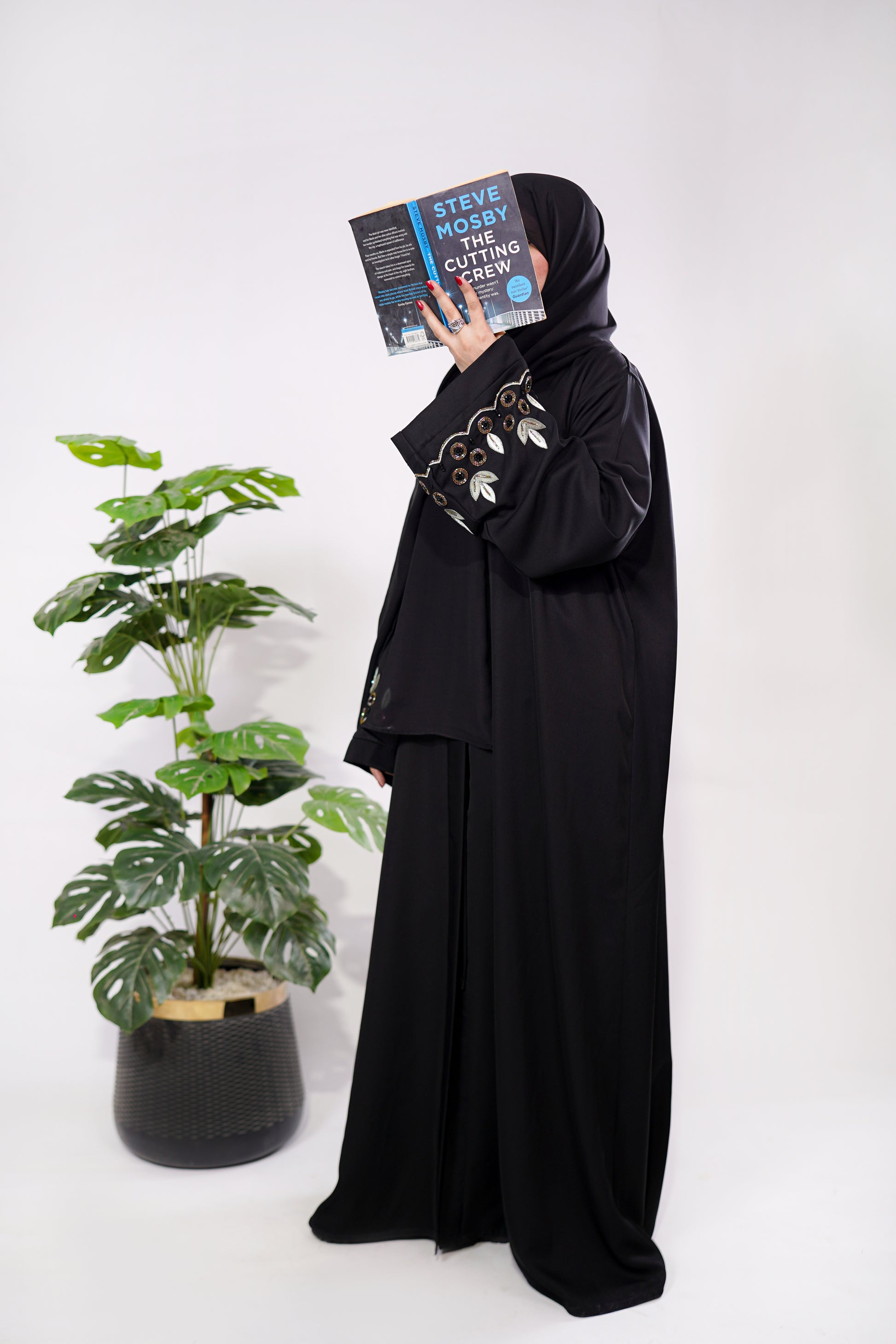 Designed for women who love effortless beauty, this abaya combines classic black elegance with soft floral details that instantly lift your look and mood.