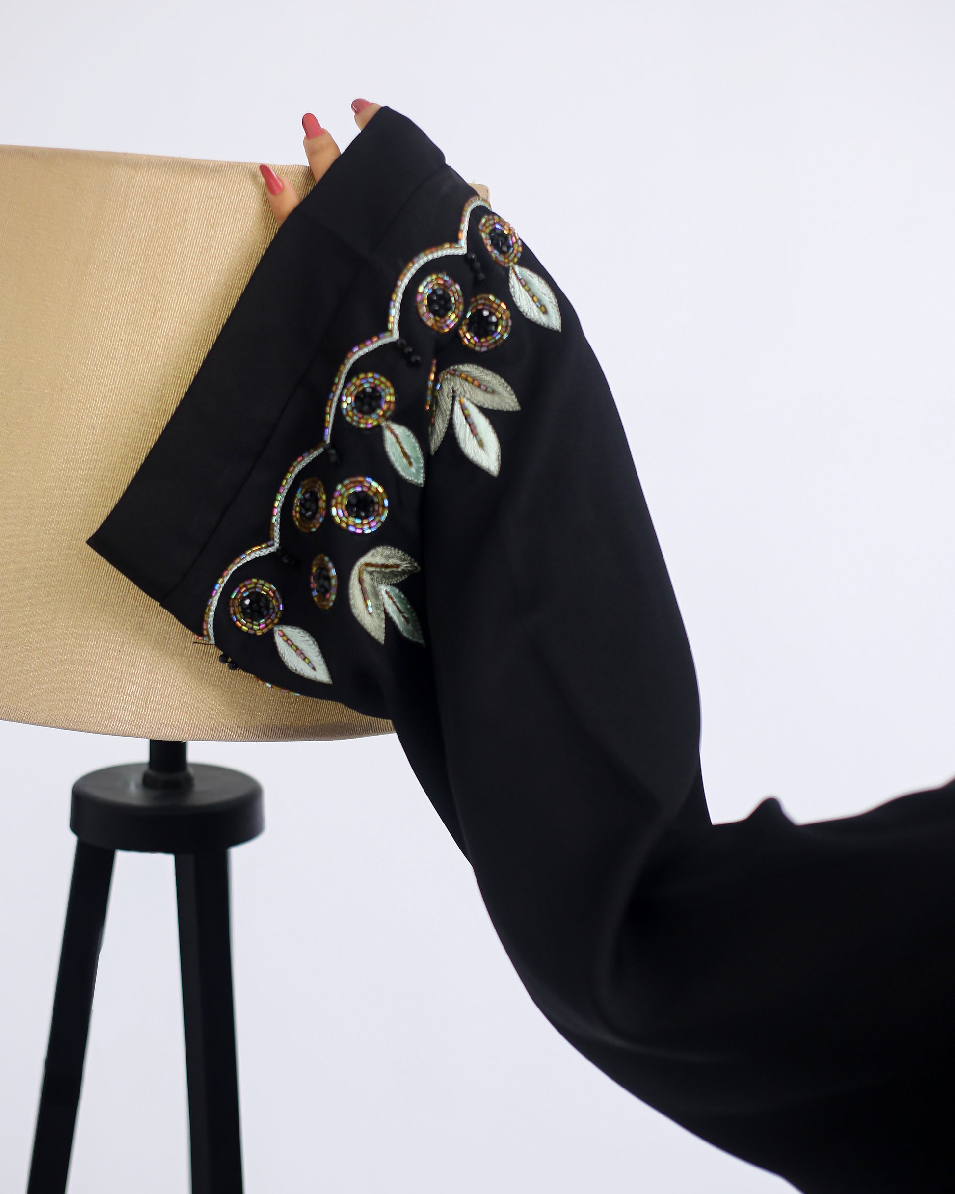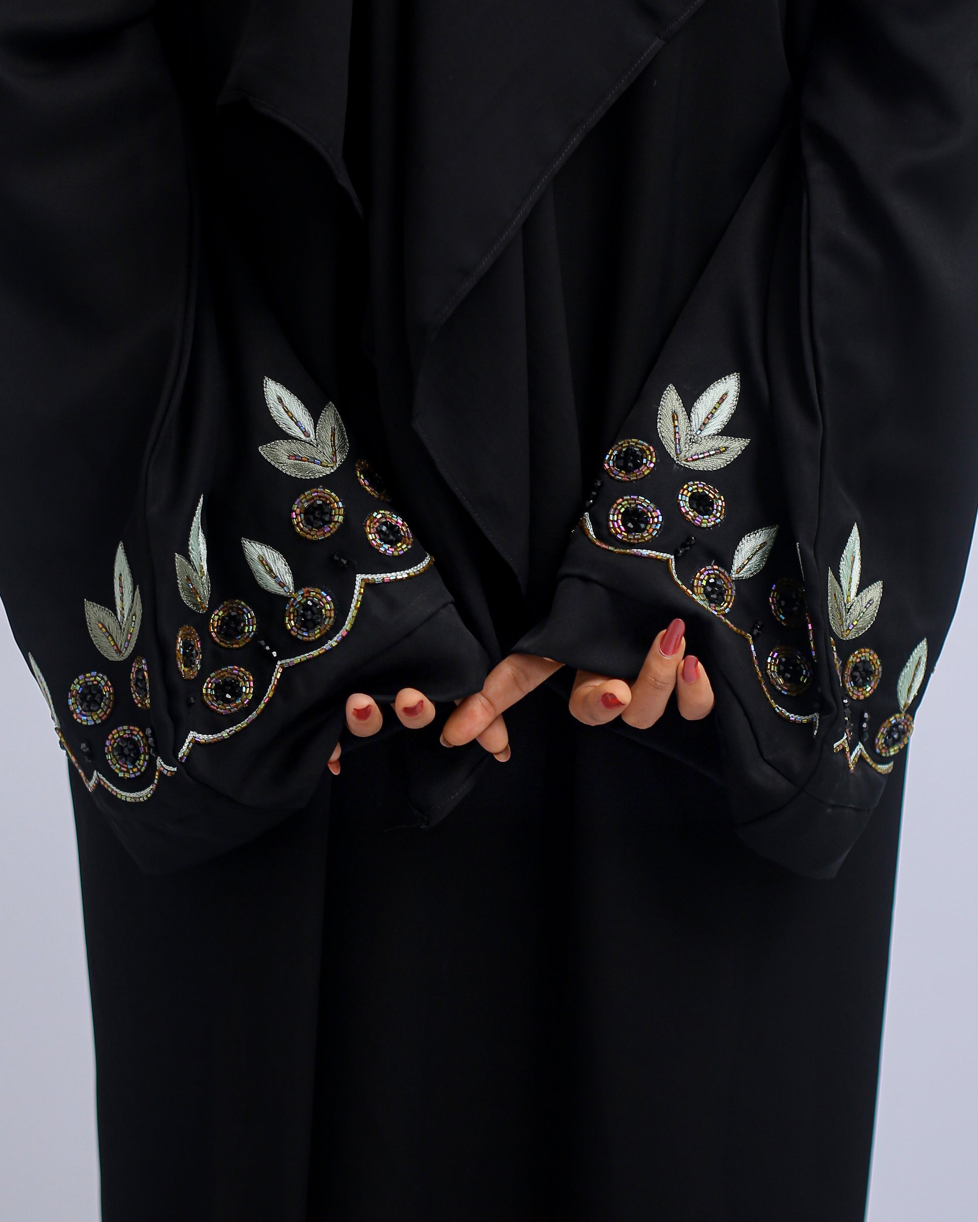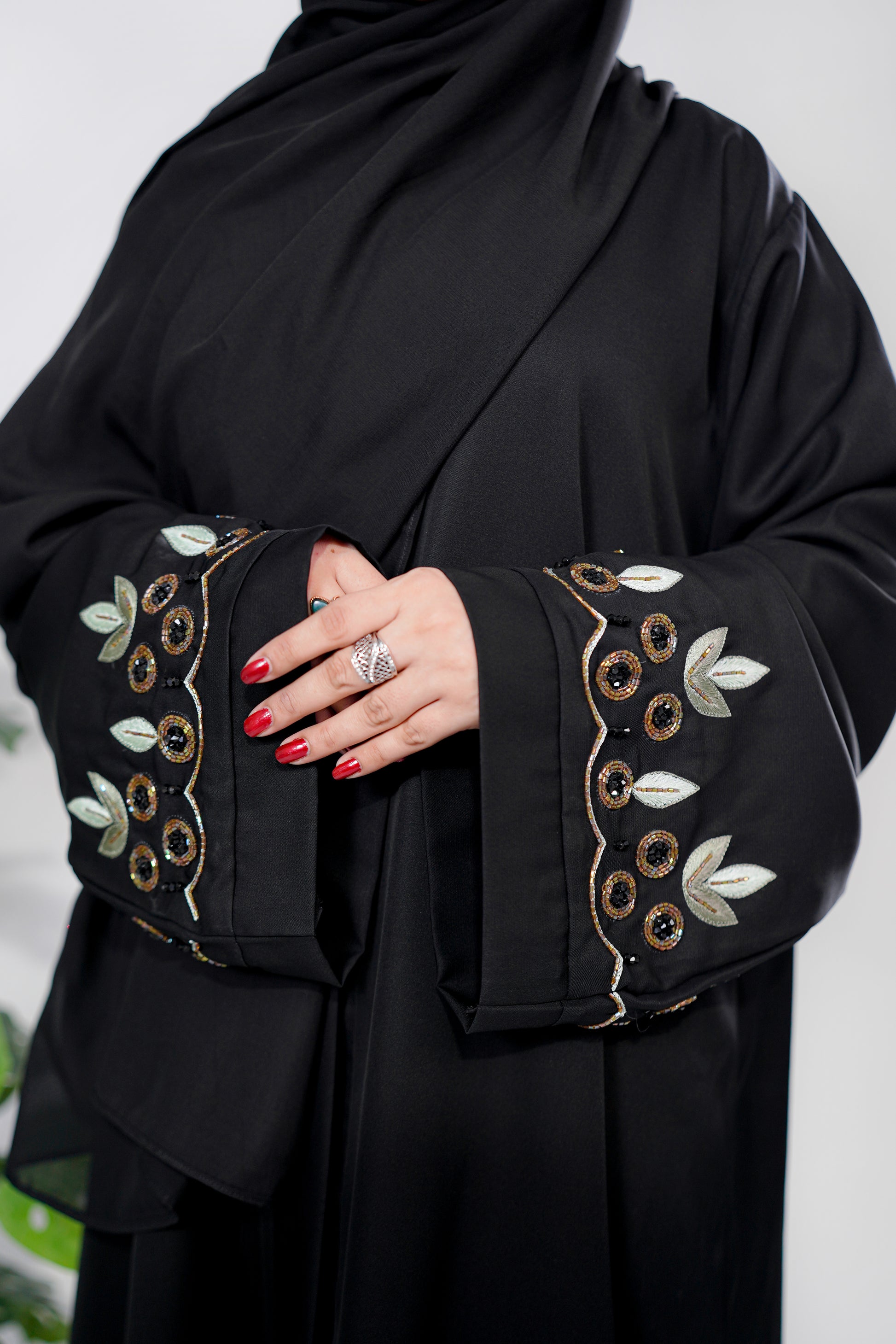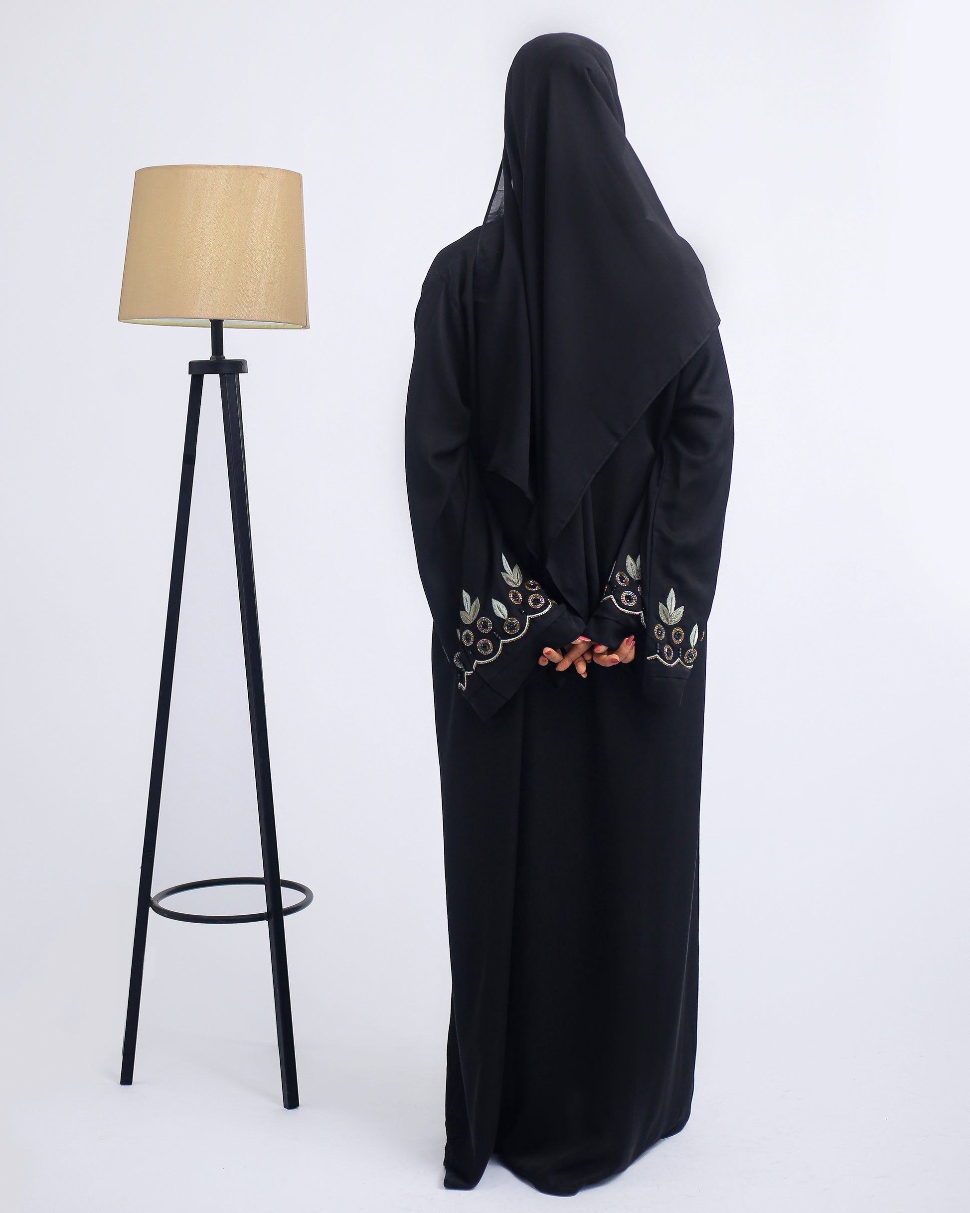 Designed for women who love effortless beauty, this abaya combines classic black elegance with soft floral details that instantly lift your look and mood.